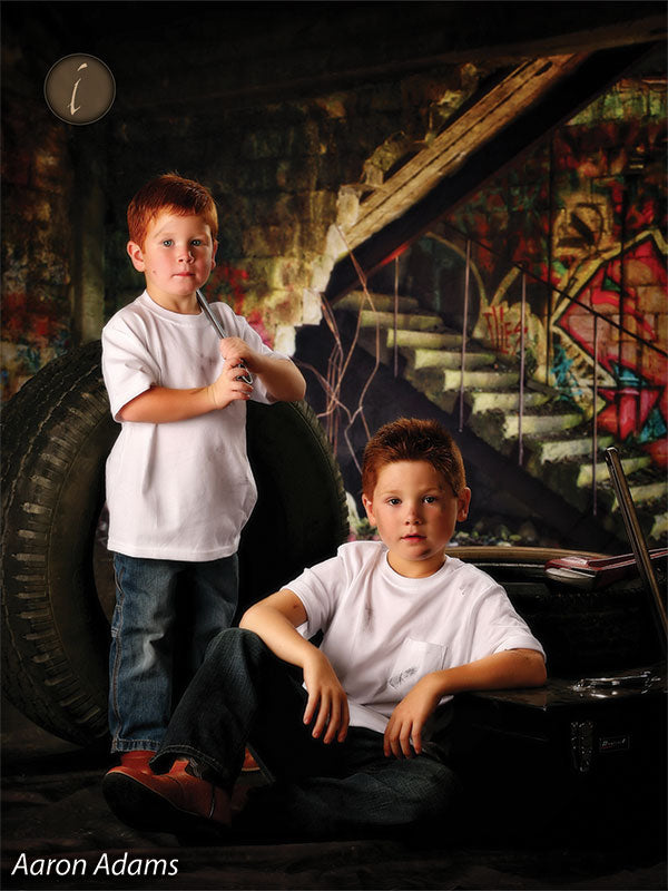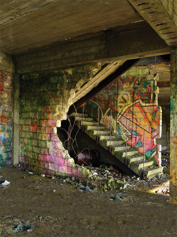 Add gritty, urban character to your photoshoots with the Hole in the Wall Photography Backdrop. Featuring a broken concrete wall revealing a graffiti-covered stairwell in an abandoned building, this backdrop delivers rich textures and authentic decay. Ideal for edgy portraits, streetwear editorials, and dramatic storytelling themes, it brings raw energy and visual depth to any studio setup.