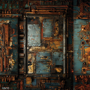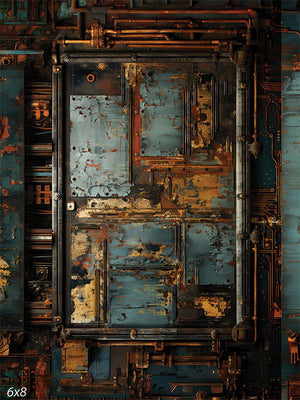 This Rustic Industrial Panel Photography Backdrop offers a visually captivating blend of weathered industrial elements, perfect for adding a gritty, urban edge to your photoshoots. The backdrop features a detailed arrangement of aged metal panels, peeling paint, and intricate mechanical components, creating a striking tapestry of textures and colors. The dominant hues of weathered blues, rusty oranges, and deep metallic tones evoke a sense of history and industrial charm, making this backdrop ideal for creative projects that demand a raw, authentic aesthetic.