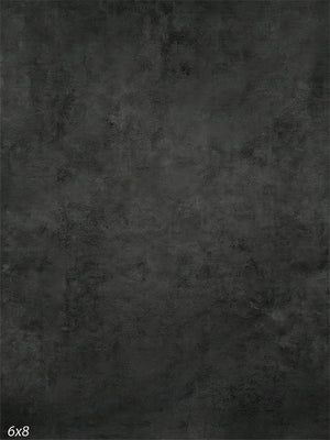 This photography backdrop displays a deep gray field with a painterly-style texture and subtle tonal movement that reads cleanly behind a person in studio portrait environments. The printed photography backdrop maintains a restrained, low-contrast appearance, allowing subjects to remain visually prominent while the background provides quiet texture and depth.