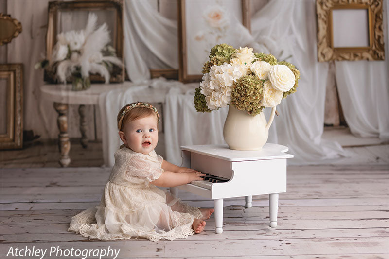 Capture timeless charm with the Ivory Antique Wood Plank Rustic Photography Floor Drop—a photography floor drop that brings rustic elegance to every session. Featuring weathered ivory planks with distressed details and natural wear, this backdrop creates a cozy, vintage-inspired setting ideal for a wide range of photography styles. Its soft, neutral palette allows your subjects to shine while adding warmth and texture to your scene.