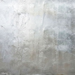 This photography backdrop shows a light, weathered plaster wall surface that reads as a continuous studio background behind a person in frame. The palette stays in soft off-white, pale gray, and muted ivory with gentle vertical washes, fine hairline cracking, and subtle trowel texture that adds depth without strong contrast or a fixed focal point.