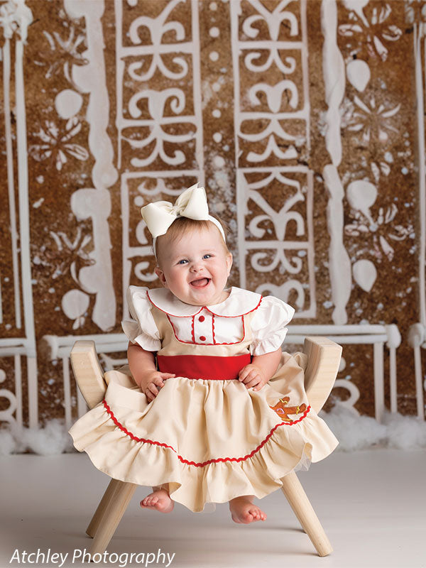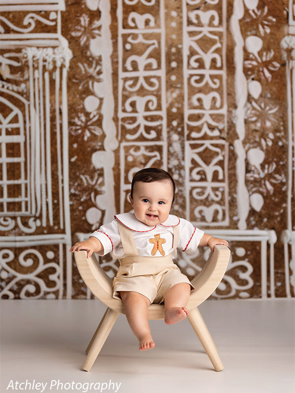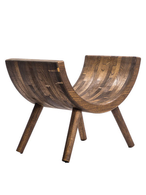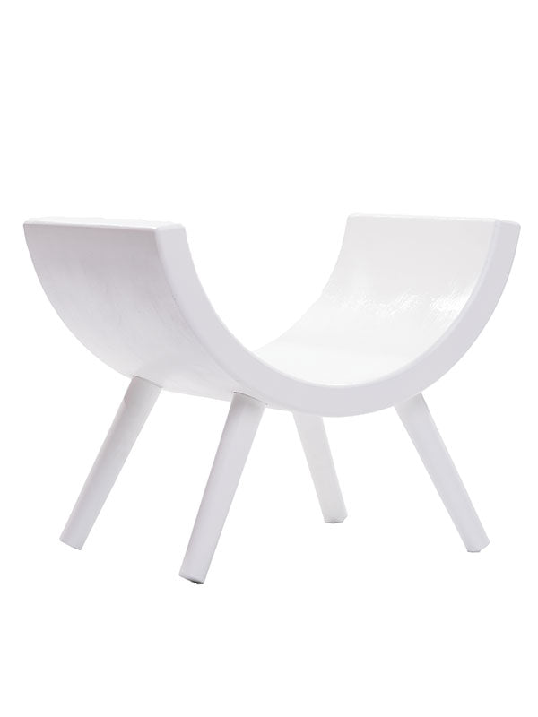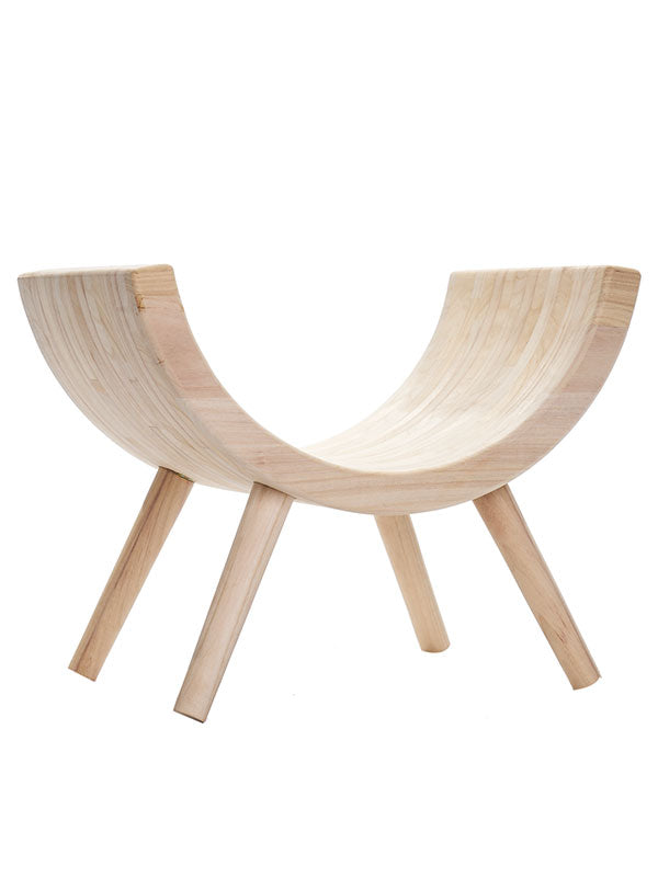 Small curved bench for posing babies and small children. Handmade from wood. Legs are removable for storage.
