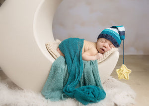 This lightweight and sturdy newborn moon posing prop is the perfect way to create stunning portraits of a sleeping baby. The foam coated prop is safe for newborn babies, and the crescent moon shape is perfect for creating a whimsical and magical look.