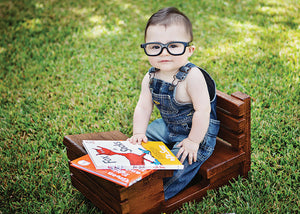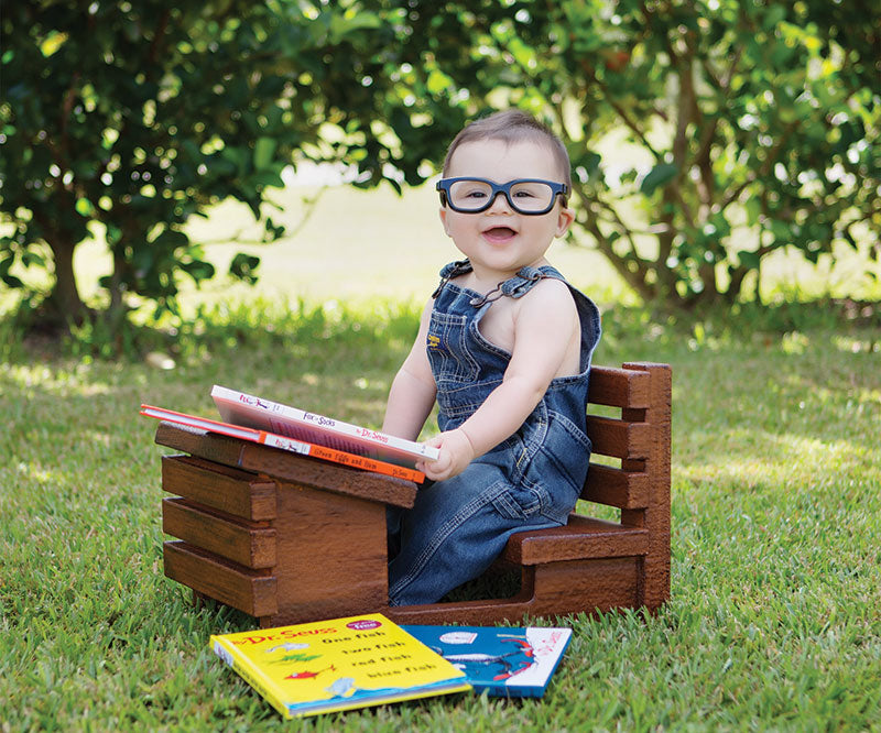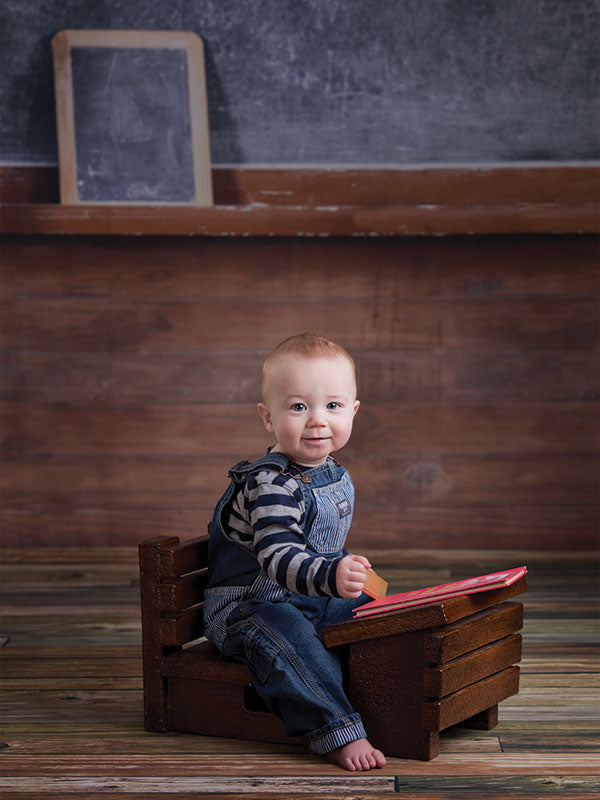 Desk prop for children photographers and school portraits. Best for sitting babies age 6-months and up. Realistic yet very lightweight. Hand painted with a dark brown finish.