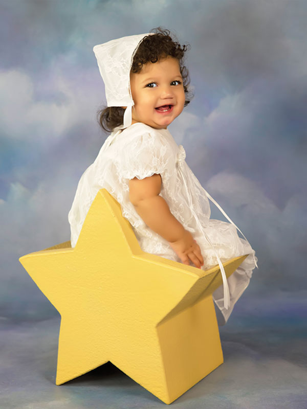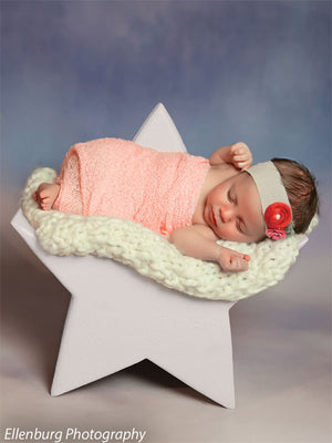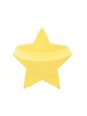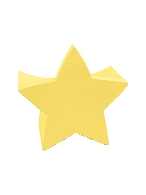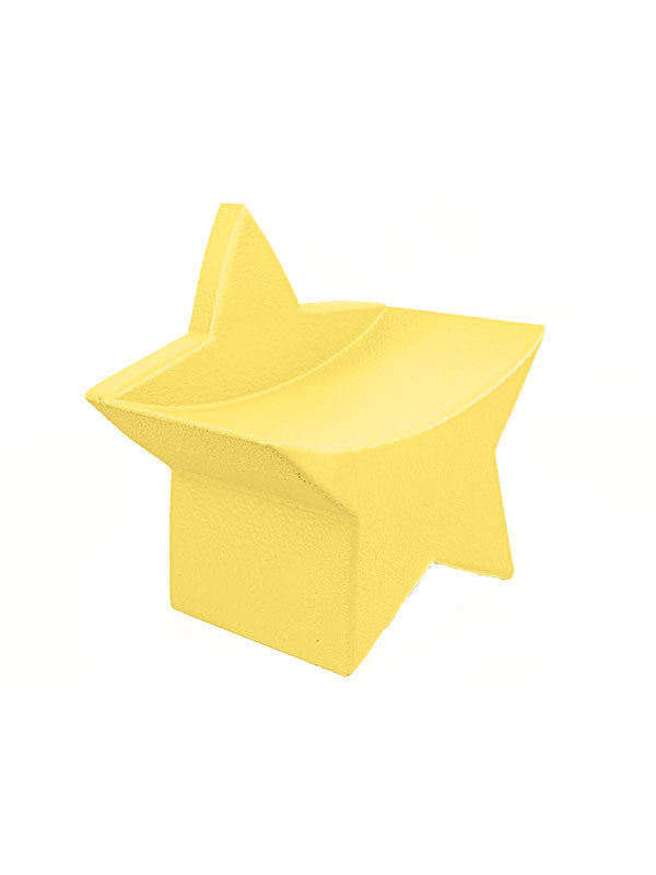 Newborn star bench is painted a yellow tone and can be used indoors and outdoors. Made from a light weight hard coated foam. Easily transport this piece to any location.