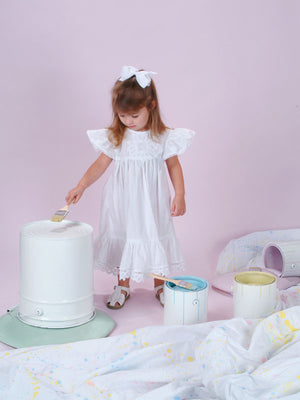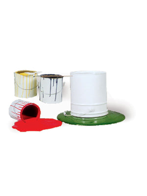 Spilled paint can prop set includes 2 paint brushes, three 1-gallon spilled paint cans and one 5-gal spilled paint can.