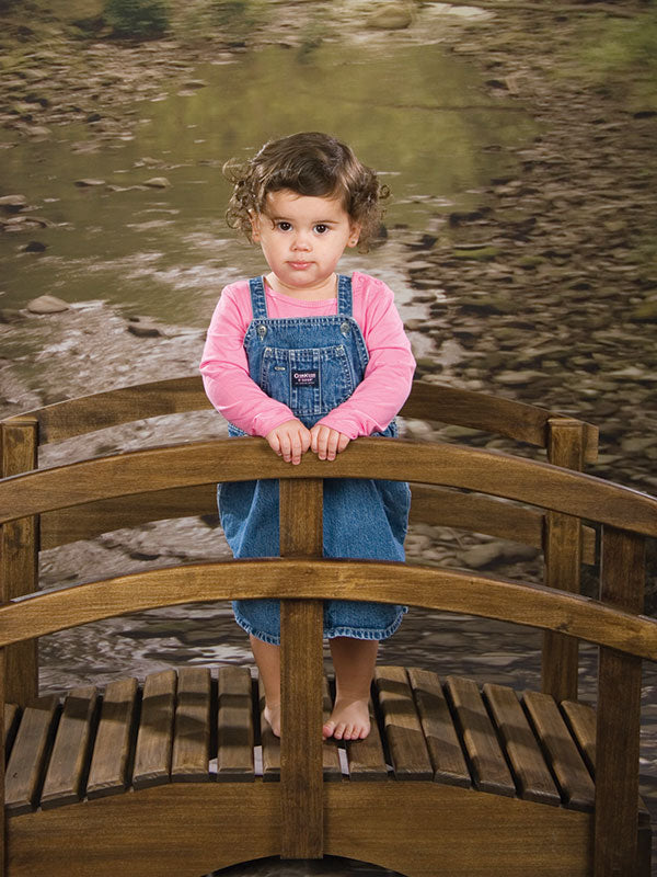 Footbridge photography prop folds in half which allows for easy portability and storage. Made from natural wood, several color finishes are available.