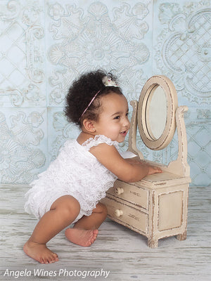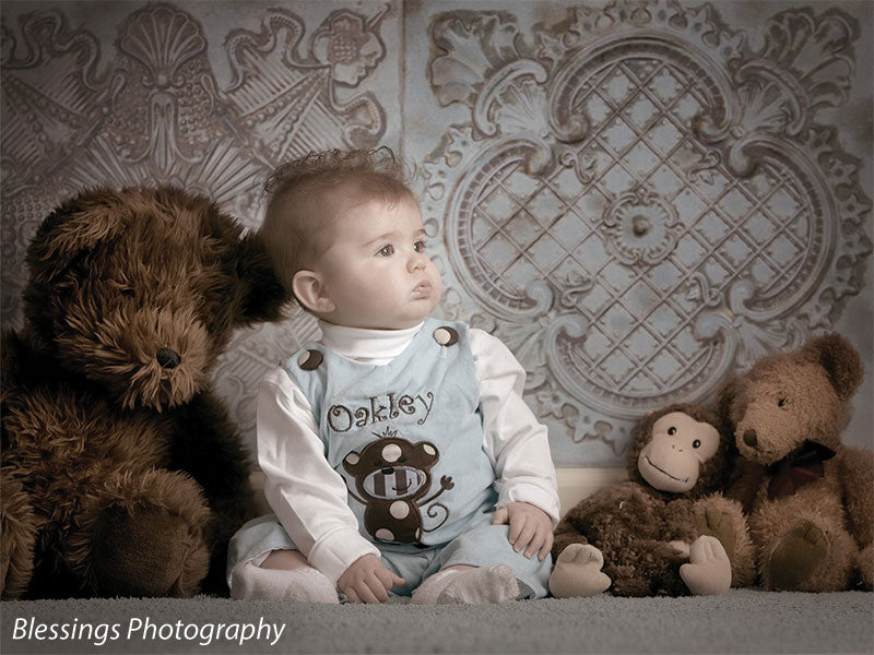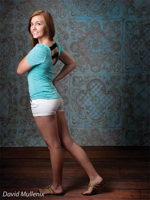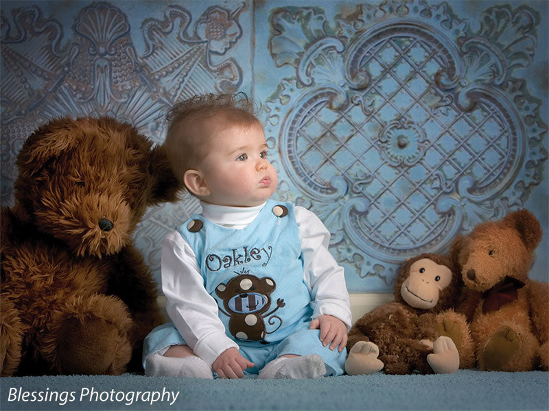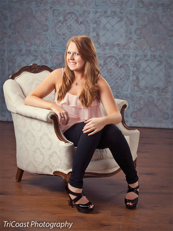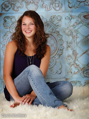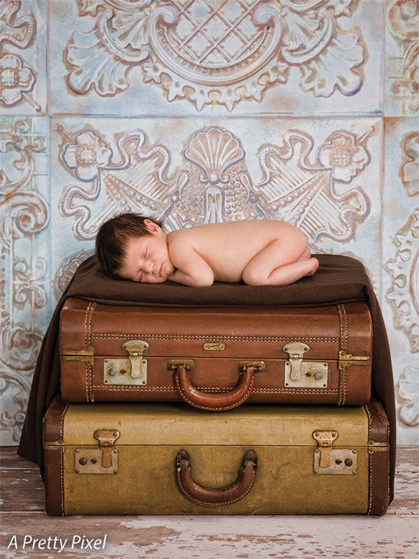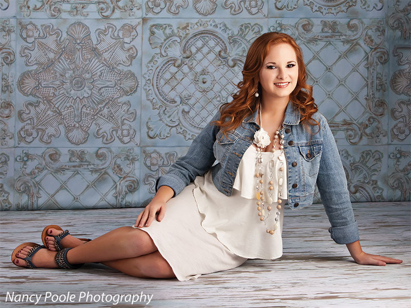 The EuroMix Pale Blue Photography Backdrop blends multiple vintage European tile motifs in a serene pale blue colorway. Featuring alternating designs—quatrefoils, scrollwork, medallions, and latticework—this backdrop brings refined texture and a gentle patina effect to your studio. Ideal for clean, romantic portraiture or soft-toned product sessions, it offers structure, visual depth, and a timeless feel without overwhelming the subject.