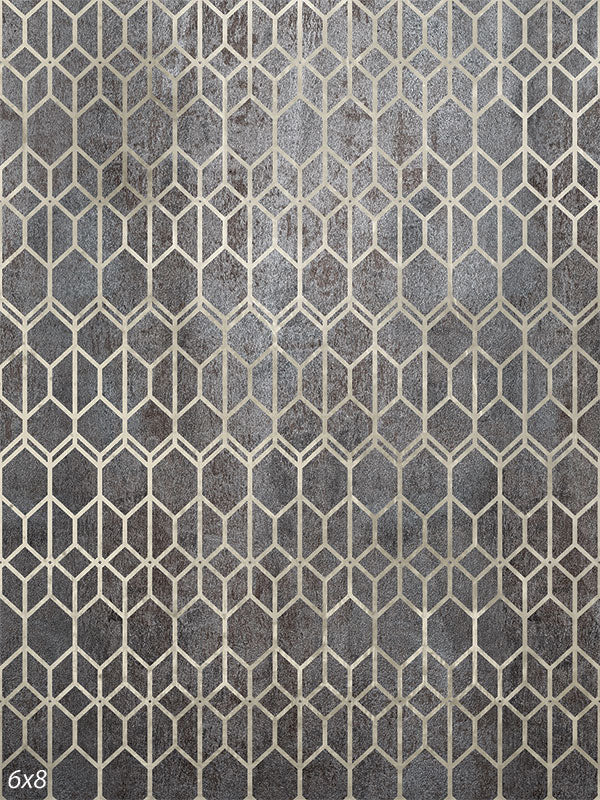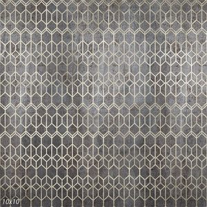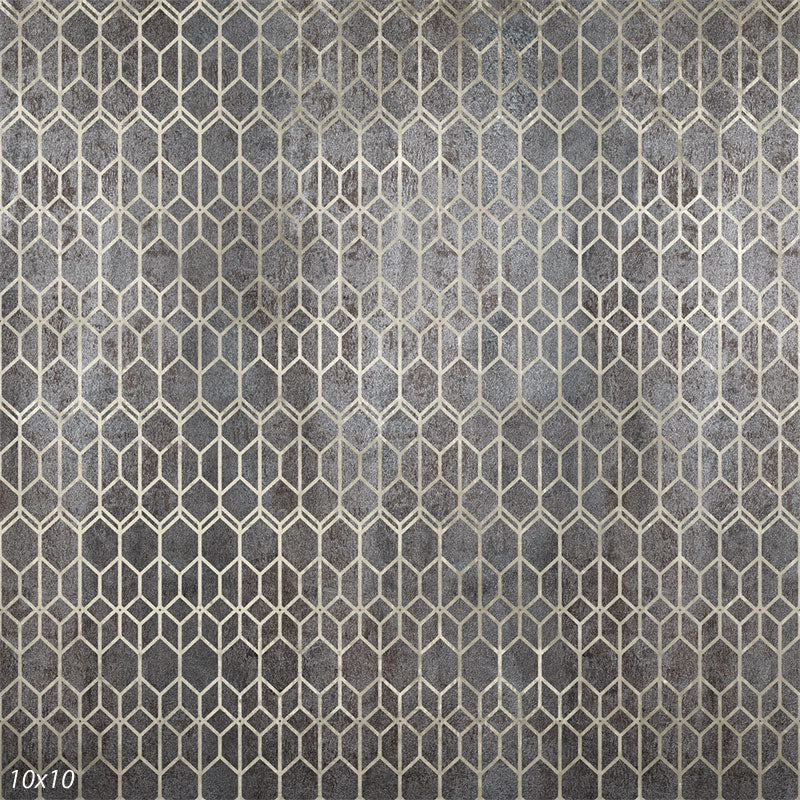 The Industrial Geometric Pattern Photography Backdrop presents a modern, edgy design with its interlocking geometric shapes in a subtle metallic finish. This backdrop features a series of hexagons and diamonds in a refined silver and gray color palette, giving it a sleek and contemporary appearance. The distressed texture of the backdrop adds an industrial vibe, making it an ideal choice for fashion shoots, urban-themed portraits, and product photography seeking a modern edge.