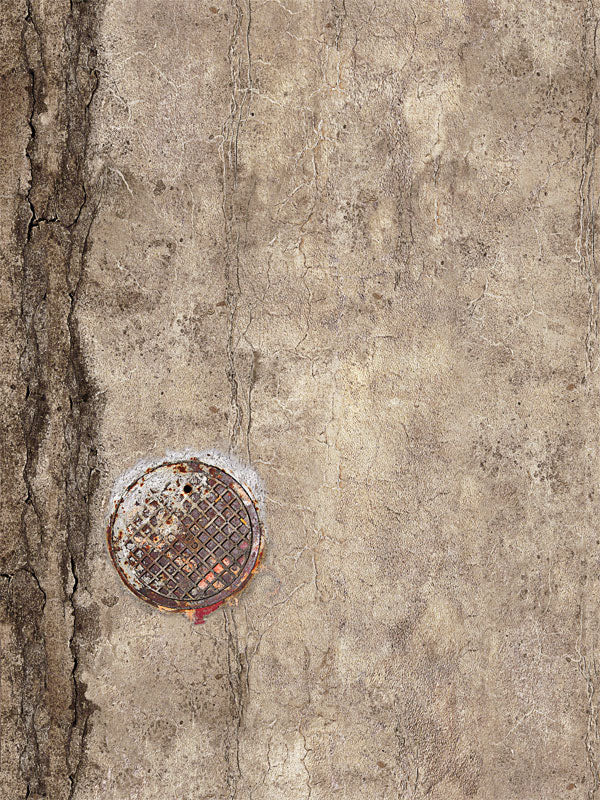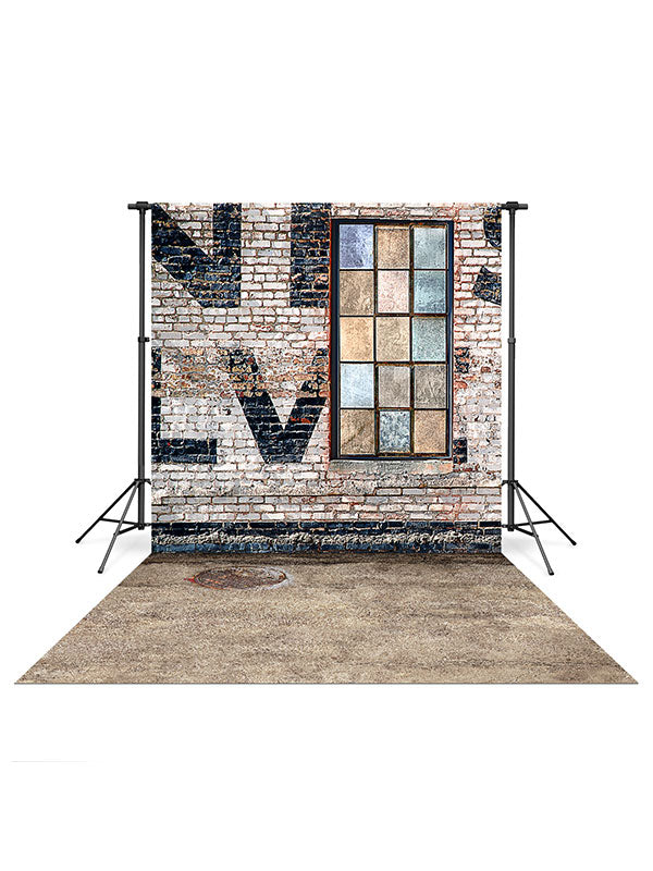 Brick Warehouse Window Backdrop and Man Hole Cover Floor Drop Bundle