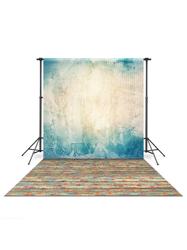 Caribbean Blue and Tan Backdrop and Flower Shack Wood Floor Drop Bundle