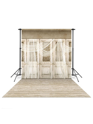 Ivory Doors Backdrop and Cream Universal Wood Floor Drop Bundle