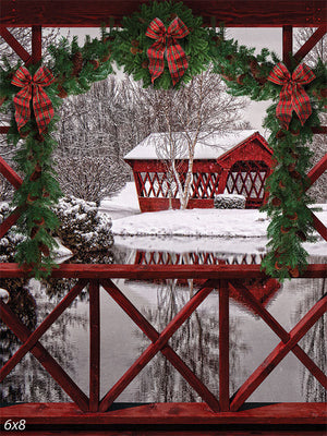 Winter Bridge Backdrop and Brown Wooden Planks Floor Drop Bundle
