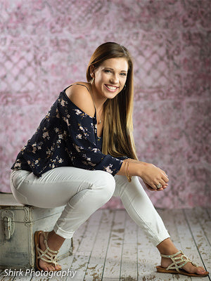 The EuroMix Distressed Pink Professional Photography Backdrop features a delicate tile-inspired pattern with classic European motifs softened by a gently weathered pink finish. This romantic design adds charm and sophistication to any photography setup, making it ideal for timeless portraiture and editorial shoots.