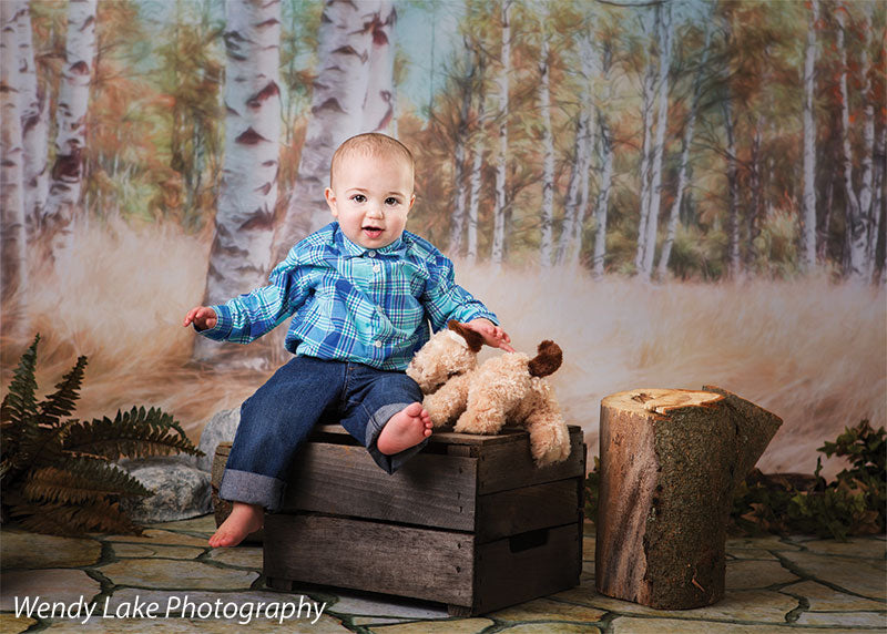 Immerse your photoshoots in the peaceful beauty of nature with this Golden Birch Forest Photography Backdrop. Featuring tall birch trees with white bark set against golden grasses and a soft blue sky, this backdrop provides a serene and natural setting for a variety of photography styles. The backdrop's soft autumnal tones make it perfect for outdoor-themed portraits, engagement sessions, or editorial photography.