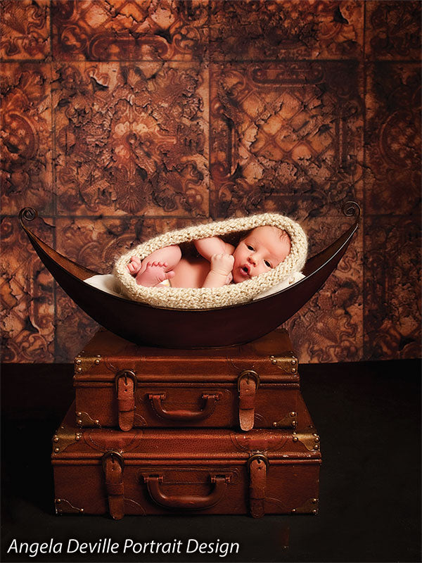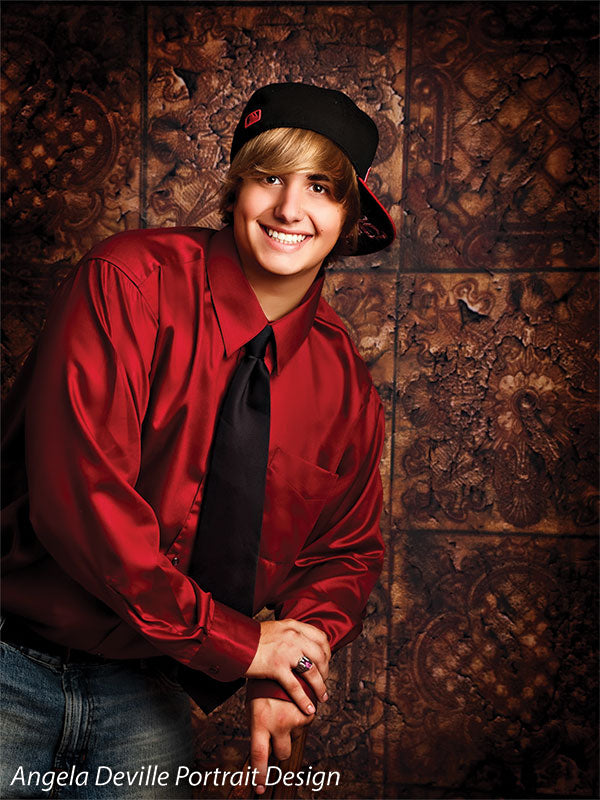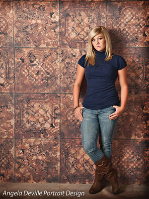 Introduce rich, old-world sophistication to your studio with the EuroMix Gold Textured Photography Backdrop. Featuring a repeating pattern of ornate European-inspired tiles in distressed gold and bronze tones, this backdrop creates a luxurious and timeless background ideal for a variety of portrait and editorial styles.