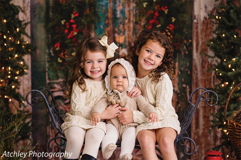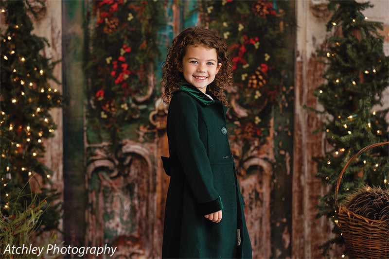 The Rustic Christmas Door Photography Backdrop creates a warm, inviting scene perfect for holiday photoshoots. Whether you’re photographing children, families, or festive products, this backdrop adds a touch of classic holiday charm to every image.