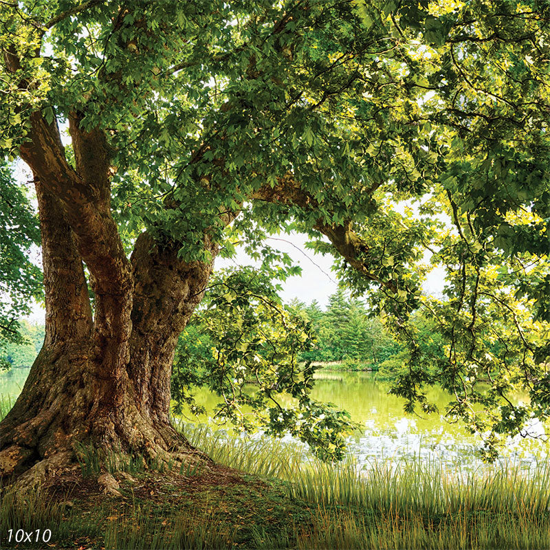 The Woodland Serenity Photography Backdrop brings the peaceful ambiance of the forest to your photoshoots. Featuring a large, stately tree with its sprawling branches casting shade over a serene pond, this backdrop is ideal for nature-themed portraits. The combination of lush greenery, earthy tones, and a reflective body of water creates a sense of calm and tranquility, making it a versatile choice for a range of photography styles.