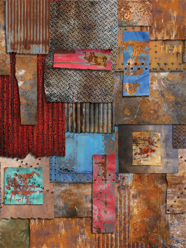 Step up your photography game with our Rustic Industrial Collage Textured Photography Backdrop, designed for professionals who seek to add depth and character to their shoots. This backdrop features a striking collage of textured metal panels, worn paint, and patina that creates a rustic, industrial feel. Whether you're capturing fashion, product, or portrait photography, this backdrop adds a bold and unique touch to any session.