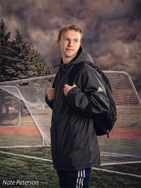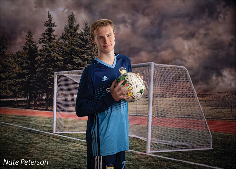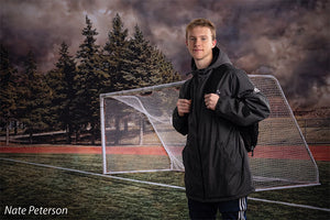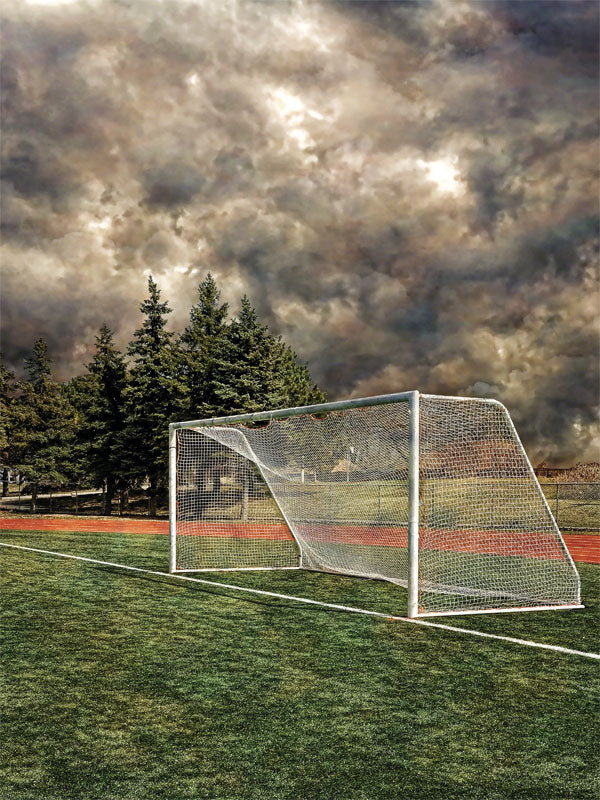 Capture the intense atmosphere of a stormy soccer field with the Stormy Goalkeeper Field Photography Backdrop. This backdrop features a dramatic stormy sky over an expansive soccer field, with a lone goalpost positioned to add focus and depth to the image. Whether you're shooting sports portraits, athletic products, or themed event photography, this backdrop provides a dynamic and professional setting that elevates your photos.