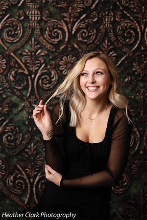 The Vintage Ornamental Floral Photography Backdrop is designed for professional photographers seeking a backdrop that combines elegance with timeless charm. This backdrop features an intricate floral pattern in rich earthy tones, including deep browns, soft gold accents, and muted greens. The ornate floral motifs create a regal and classic atmosphere, making it perfect for high-end portraits, wedding photography, fashion shoots, and editorial work.