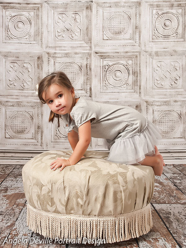 Classic Victorian Pale Tin Tile Photography Backdrop for Vintage and Studio Photoshoots