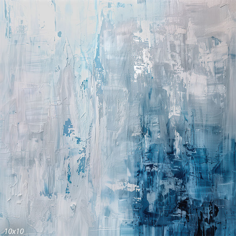 The Arctic Mist printed old masters photography backdrop features a cool and refreshing palette inspired by icy landscapes and winter skies. It showcases a striking blend of soft whites, pale blues, and deep navy tones that flow together in an abstract, textured pattern.