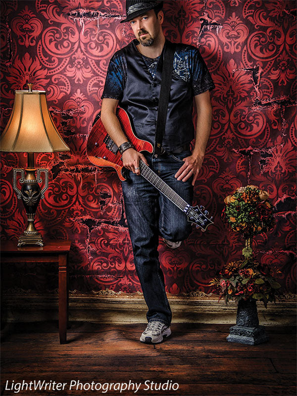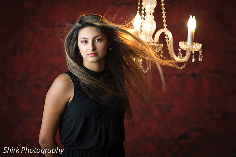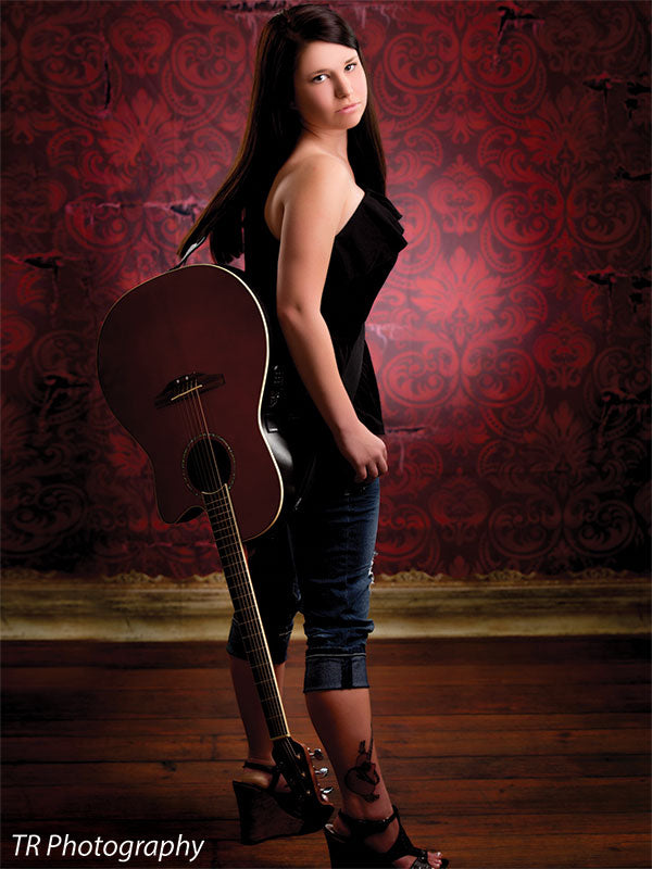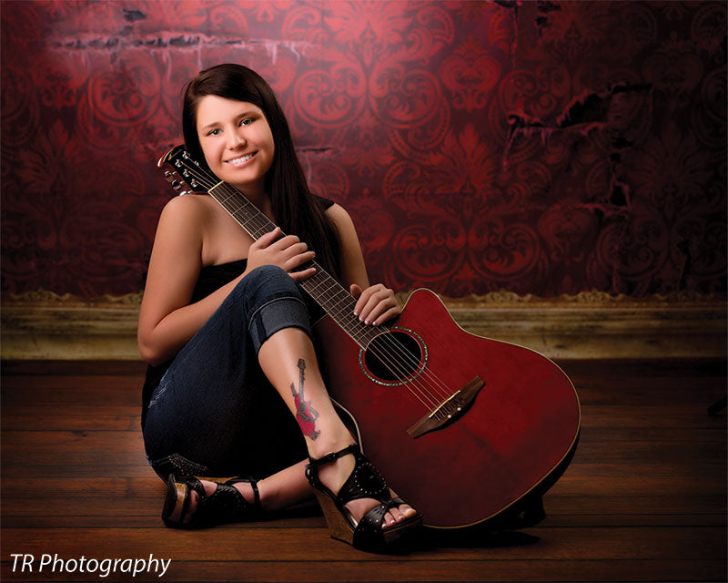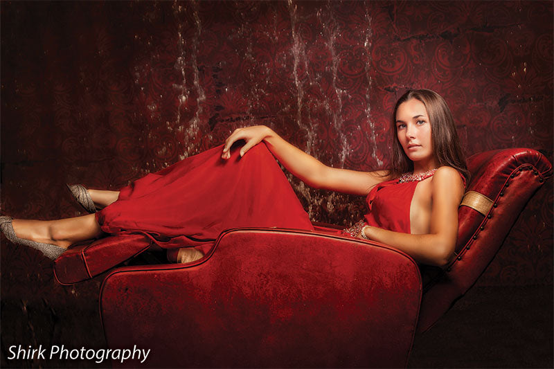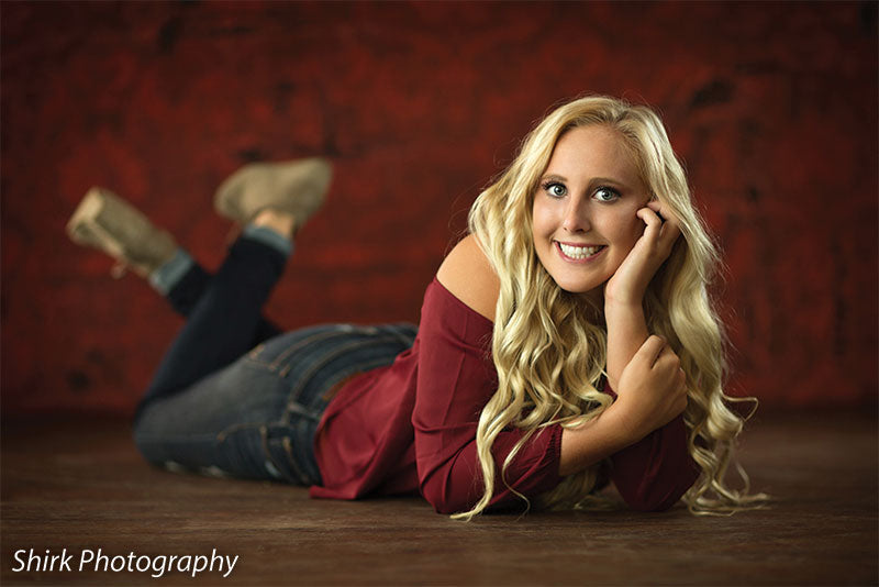 The distressed red photography backdrop is suitable for numerous professional photography setups: