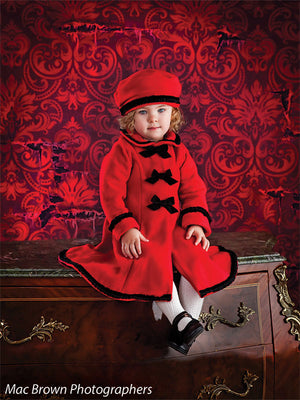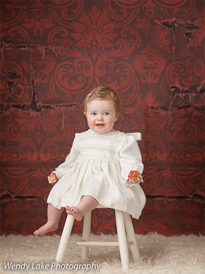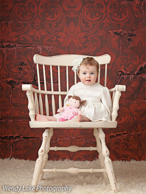 This exquisite red damask backdrop is meticulously designed to bring a sense of history and sophistication to your photography sessions. The subtle distressed detailing on the damask pattern creates a weathered, authentic look that complements vintage and classic photography styles. The antique red damask backdrop is versatile, offering a richly textured background that balances elegance with subtlety, allowing the subject to remain the focal point of the image.