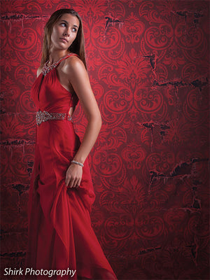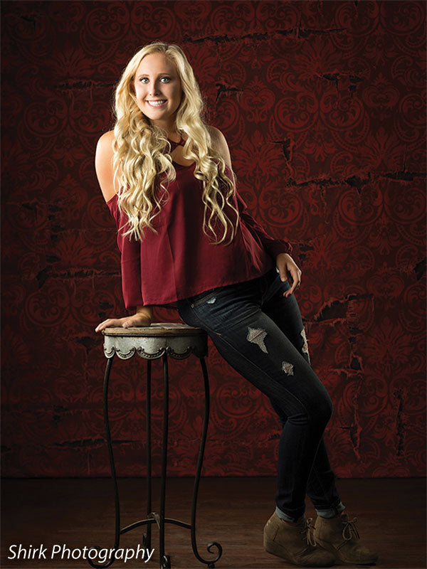 The Estella Red Damask Distressed Photography Backdrop provides photographers with an essential tool to elevate the quality of their work. Its classic red hue and elaborate damask design, combined with a subtle distressed texture, offer a one-of-a-kind aesthetic that brings sophistication to any image. Ideal for creating dramatic, emotionally resonant visuals, this backdrop is designed for professionals who value both beauty and functionality in their studio setup. Crafted for durability and visual impact, this backdrop will serve as a reliable, stylish addition to any photography studio.
