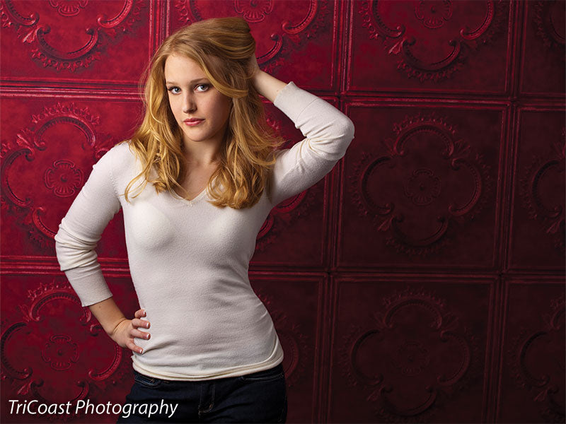 Bring a bold, vintage-inspired look to your next photoshoot with the Red Tile Photography Backdrop. Featuring a deep crimson hue and classic embossed square pattern, this backdrop offers a stunning combination of texture and color. It’s perfect for dramatic portraits, holiday-themed sessions, and editorial stylings that need a striking, architectural flair.