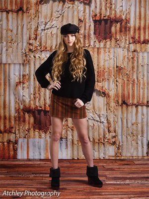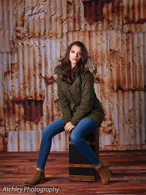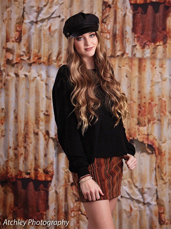 The Vintage Rusted Metal Texture Photography Backdrop offers a unique, rustic aesthetic perfect for photographers looking to add industrial charm to their shoots. The backdrop features a distressed corrugated metal design with authentic rusty textures in a warm palette of browns, grays, and oranges. Its weathered look brings a raw, aged vibe that adds depth and character to any setting.