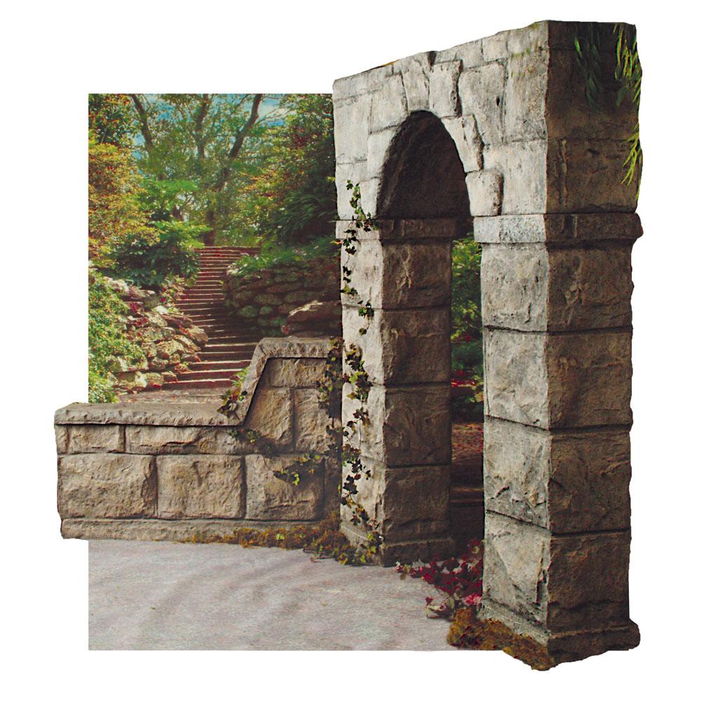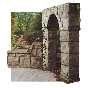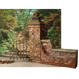 This double-sided plantation set is a traditional favorite of our customers. Sandstone brick on one side, and your choice of Classic Stone or Old Mill for the other. This set, like all of our scenic design sets, is lightweight, durable and it looks great indoors or out. Constructed from a foam material which is then hard coated for durability. Hand carved and painted by set designers in the USA.