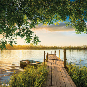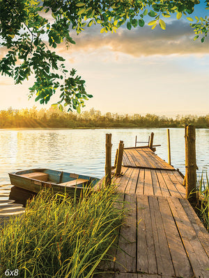The Serene Lakeside Dock Photography Backdrop captures the tranquility and beauty of a rustic dock extending into a peaceful lake. Framed by lush green foliage and bathed in the golden light of sunset, this backdrop creates a serene and picturesque setting. Perfect for various photography sessions, this backdrop is an ideal choice for creating a calming and natural atmosphere.