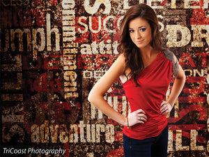 Empower your photo sessions with bold energy using the Inspiration Photography Backdrop. Featuring an eye-catching collage of motivational words like "Success," "Drive," "Triumph," and "Determination" layered over a textured grunge background, this design delivers an edgy, urban vibe. Its high-contrast colors and dynamic layout make it perfect for portraits, sports-themed shoots, branding, and editorial photography.
