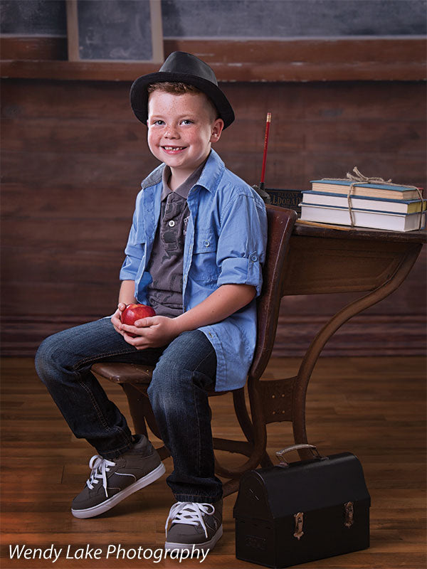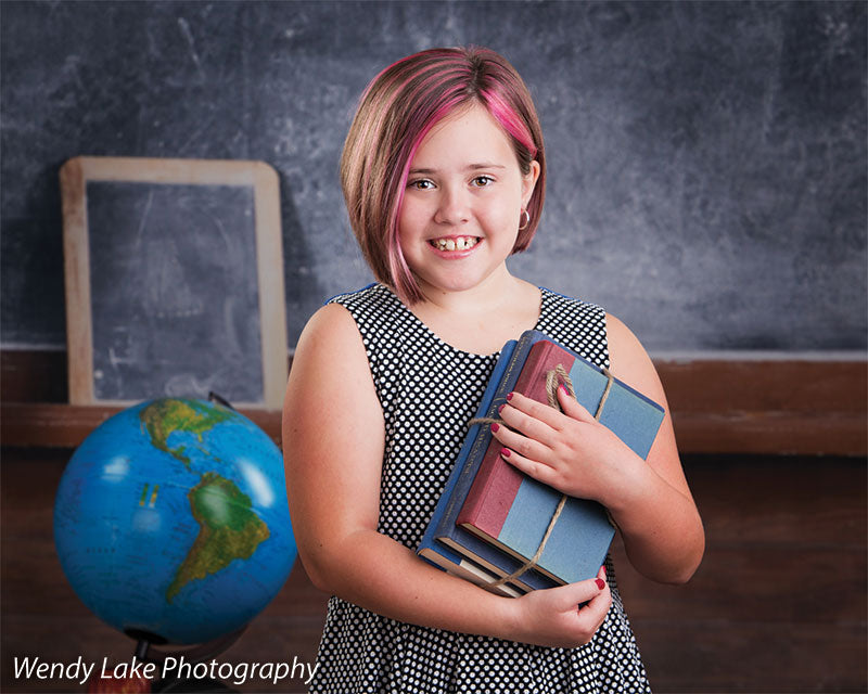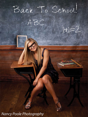 This backdrop is more than just a background—it’s a scene setter, transporting viewers to a bygone era of classic education. The distressed blackboard design, coupled with a rich wood trim, makes it an instant focal point. Its versatility means you can use it in various photography styles, from portraits to themed studio sessions, or as a functional piece in educational settings.
