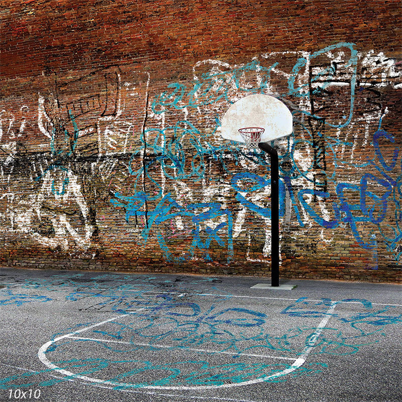 Urban Graffiti Hoop Basketball Court Photography Backdrop
