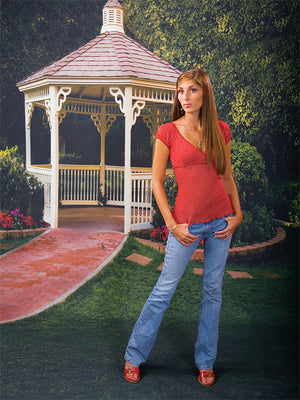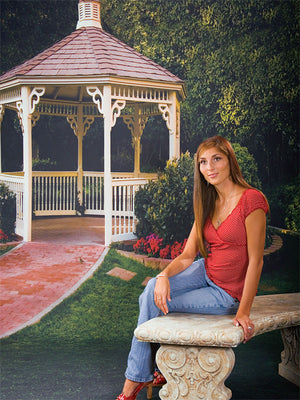 The Serenity Park Photography Backdrop offers a peaceful garden setting centered around a classic white gazebo, surrounded by manicured greenery and colorful blooms. With a red brick walkway and lush lawn detail, this backdrop brings the elegance of a formal park setting into your studio. It’s an ideal choice for photographers seeking a timeless, romantic, and inviting outdoor look year-round.