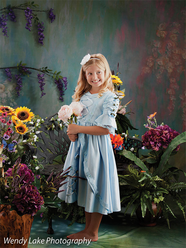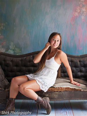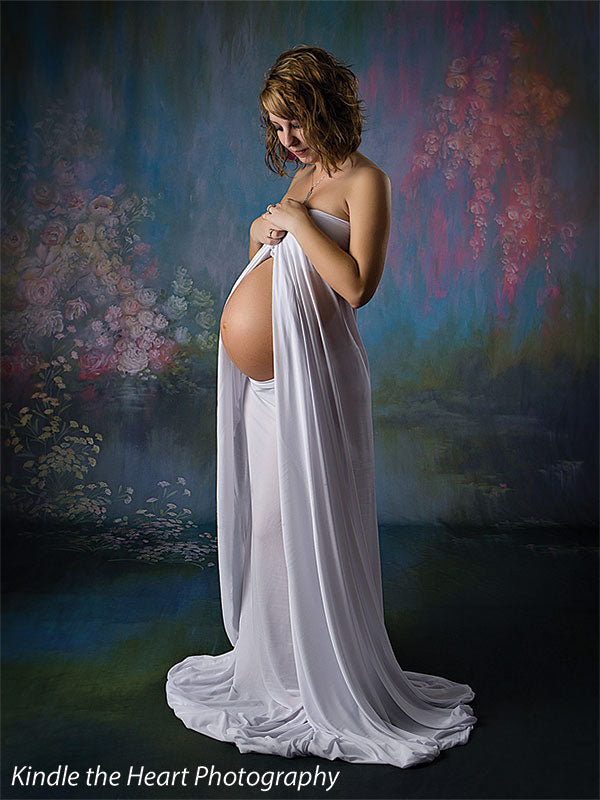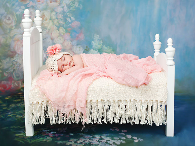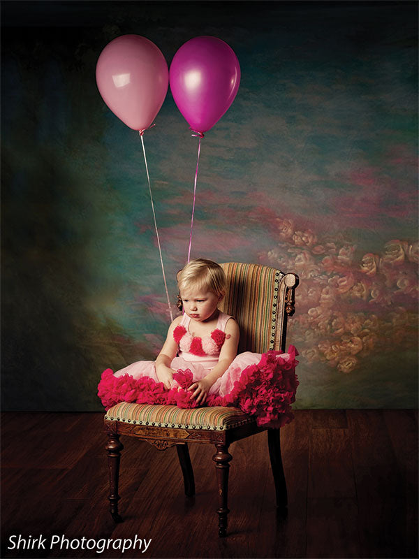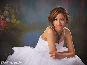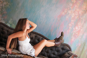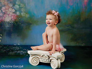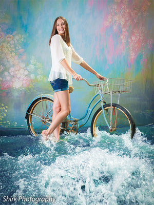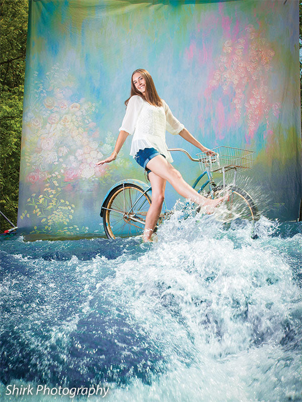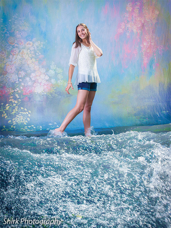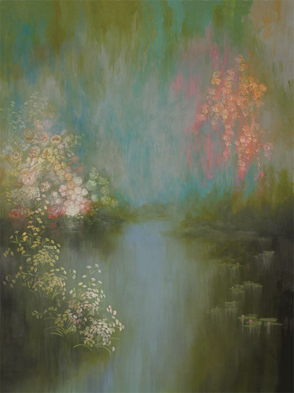 The Water Flowers Photography Backdrop evokes the tranquility of a hand-painted garden scene, with gentle brushstrokes blending lush florals, lily pads, and dreamy reflections on a still pond. With soft pastel tones of rose, peach, green, and misty blue, this backdrop feels romantic and timeless—perfect for portraits that lean into beauty, calm, and classical elegance. Its composition draws the eye gently into the distance, making it ideal for both full-length and close-up work.