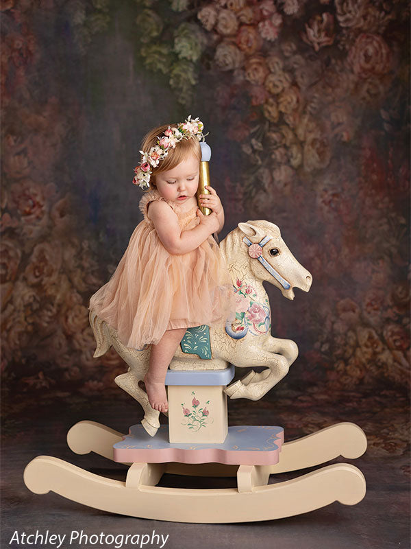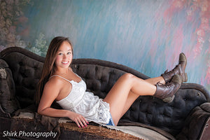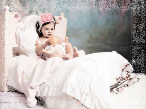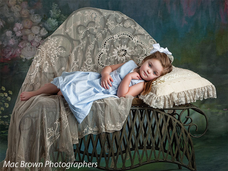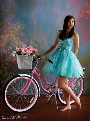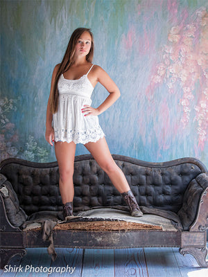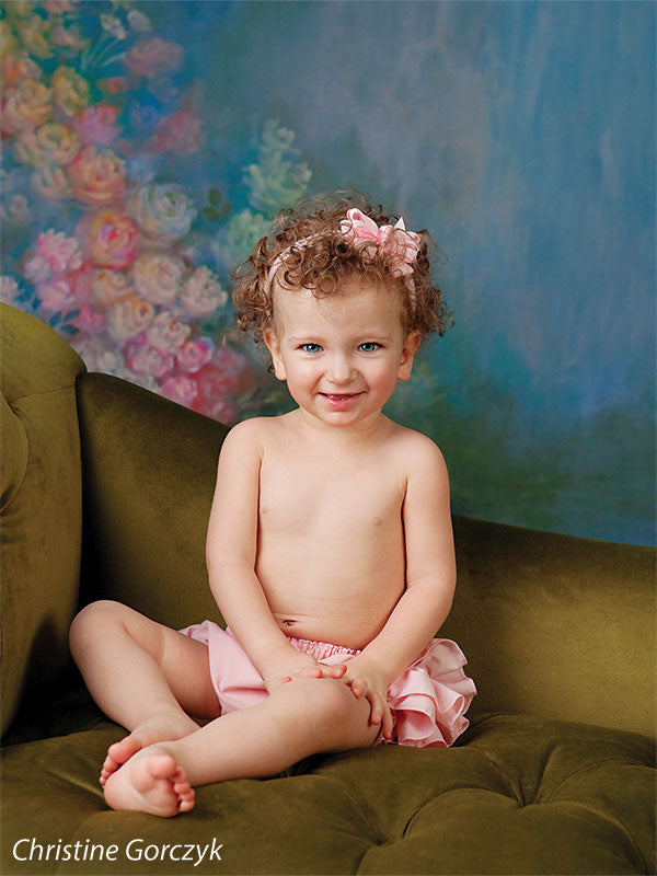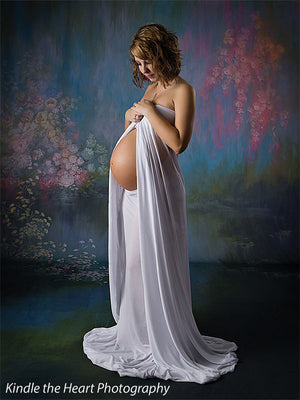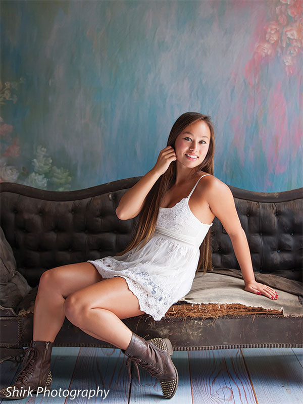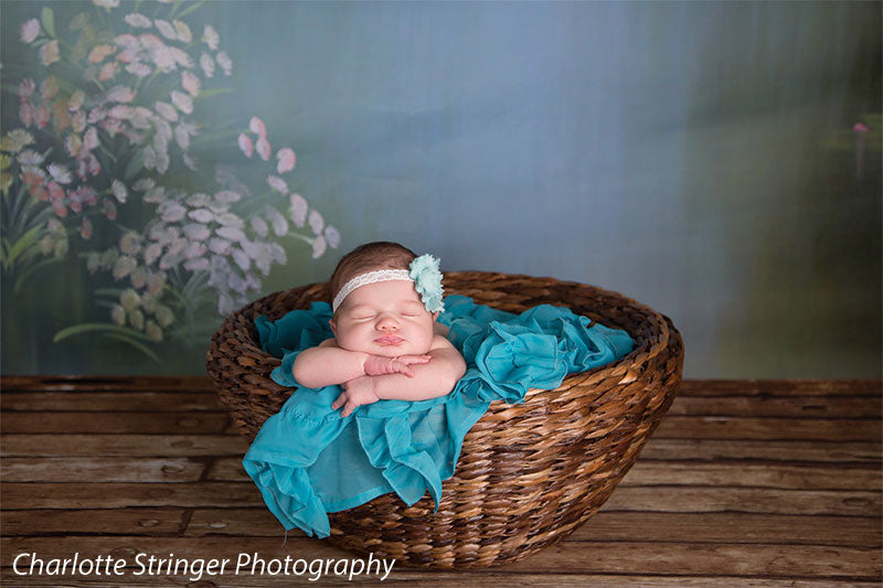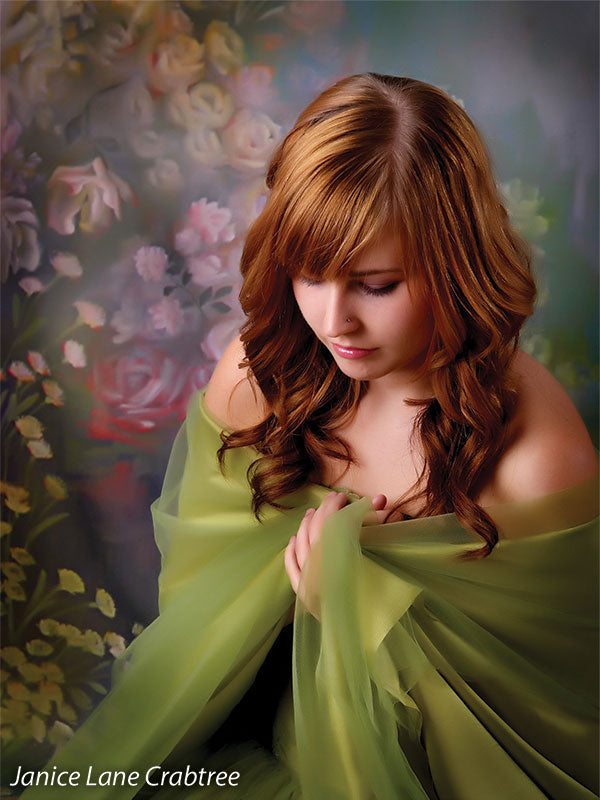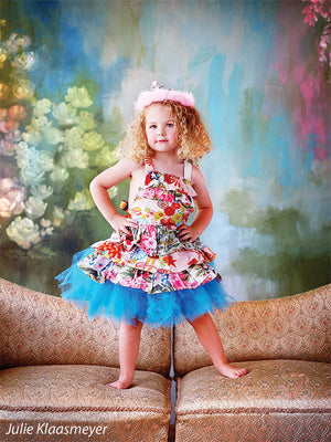 The Water Flowers Photography Backdrop evokes the tranquility of a hand-painted garden scene, with gentle brushstrokes blending lush florals, lily pads, and dreamy reflections on a still pond. With soft pastel tones of rose, peach, green, and misty blue, this backdrop feels romantic and timeless—perfect for portraits that lean into beauty, calm, and classical elegance. Its composition draws the eye gently into the distance, making it ideal for both full-length and close-up work.
