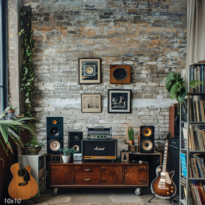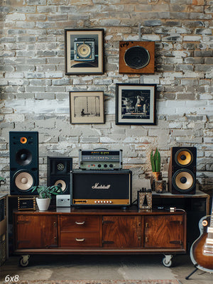 The Vintage Brick Music Studio Photography Backdrop offers photographers a stunning, industrial-inspired setting for their music shoots. Featuring a textured, weathered brick wall in muted tones of gray and earthy hues, this backdrop creates a sophisticated yet rustic look. The backdrop’s natural aging provides a sense of history and depth, making it ideal for retro, grunge, or urban-themed music sessions.