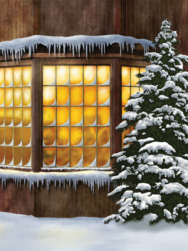 This Classic Holiday Window and Snowy Tree Photography Backdrop is a must-have for photographers capturing the magic of winter and holiday spirit. Crafted with exquisite detail, this backdrop features a warm, glowing window adorned with icicles and a festive evergreen tree dusted in snow. The rich, rustic wooden textures and the soft glow from the window create a cozy and timeless holiday ambiance, making it perfect for holiday portraits, Christmas family photos, and festive studio setups.