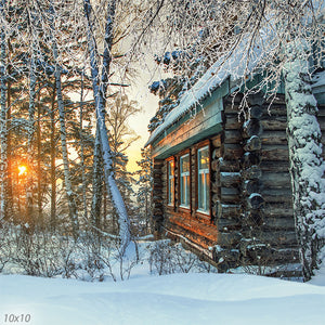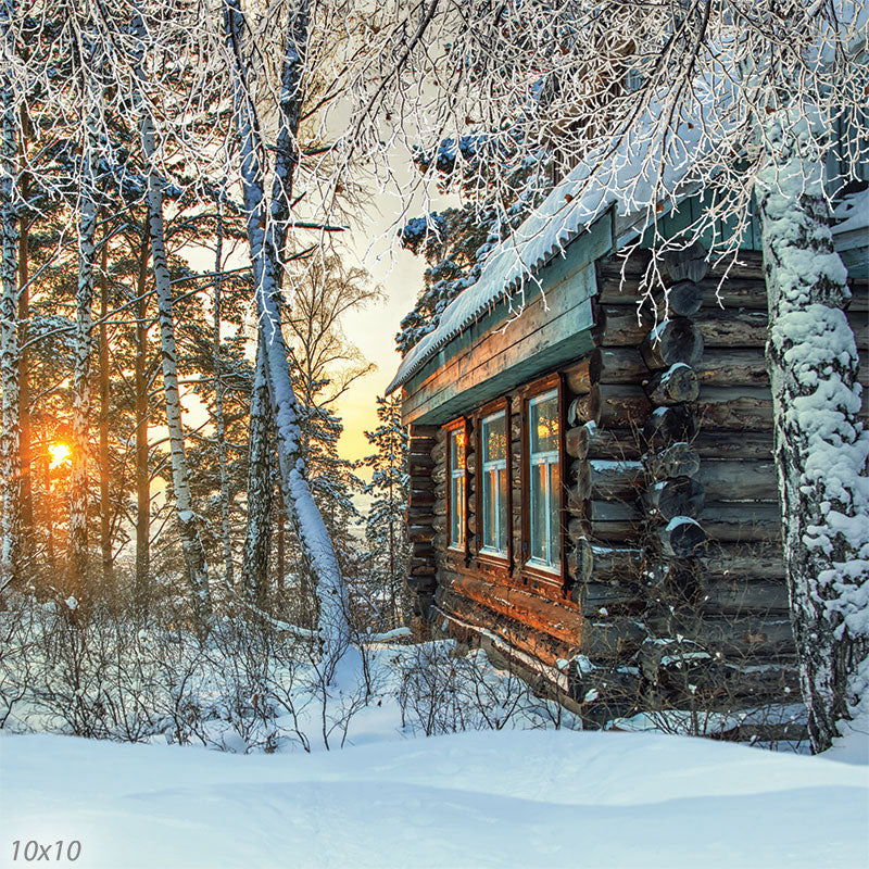Embrace the serene beauty of winter with our Rustic Winter Cabin Photography Backdrop. This enchanting backdrop features a cozy log cabin nestled in a snow-covered forest, with the warm glow of lights spilling out from the windows into the frosty landscape. The backdrop captures the essence of a peaceful winter retreat, surrounded by snow-laden trees and bathed in the soft, golden light of a setting sun. The snow-covered branches, the texture of the weathered wood, and the subtle hues of the twilight sky come together to create a scene that is both tranquil and inviting.