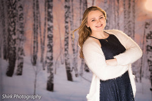 Capture the peaceful beauty of winter with the Winter Birch Forest Photography Backdrop. This stunning scene features tall birch trees with their signature white and black bark, all blanketed in soft snow. The backdrop brings the warm glow of sunlight filtering through the trees, creating a serene and tranquil winter wonderland. Perfect for seasonal photography sessions, family portraits, or holiday-themed photoshoots, this backdrop adds a magical, wintery touch to any setting.