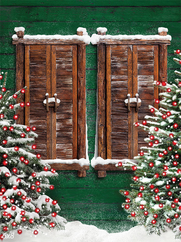 Capture the essence of a cozy winter holiday with the Rustic Wooden Shutters Christmas Photography Backdrop. Featuring two weathered wooden shutters framed by snow-covered evergreens, adorned with glowing red Christmas lights, this backdrop creates the perfect rustic and festive atmosphere for any holiday photoshoot. The backdrop’s warm, earthy tones and nostalgic holiday details make it ideal for family portraits, children's holiday sessions, or winter-themed product photography.