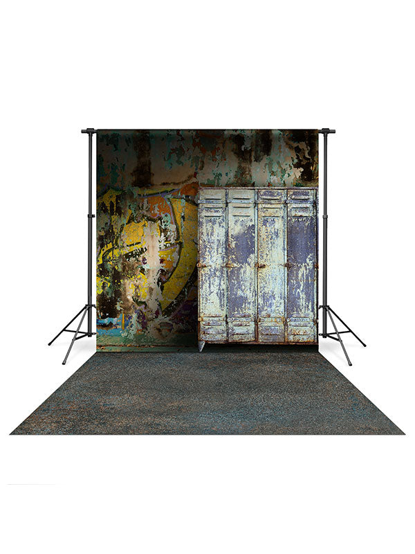Abandoned Gym Sports Backdrop and Textured Concrete Floor Drop Bundle