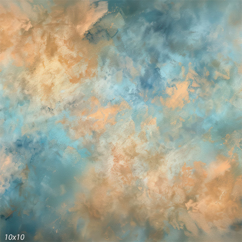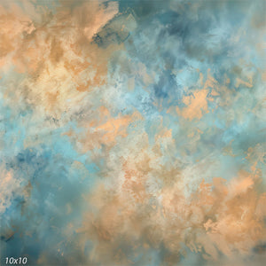 The abstract patterns with cloud-like brushstrokes and smooth gradients add depth and dimension, evoking the calming essence of coastal landscapes. The harmonious transitions between colors draw attention to the center, making it an ideal choice for portrait photography, beach-themed shoots, and creative compositions.