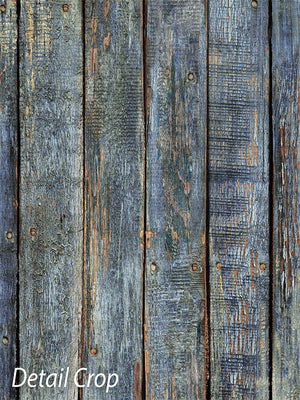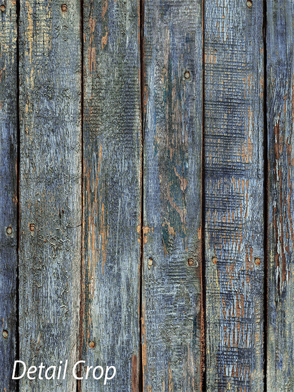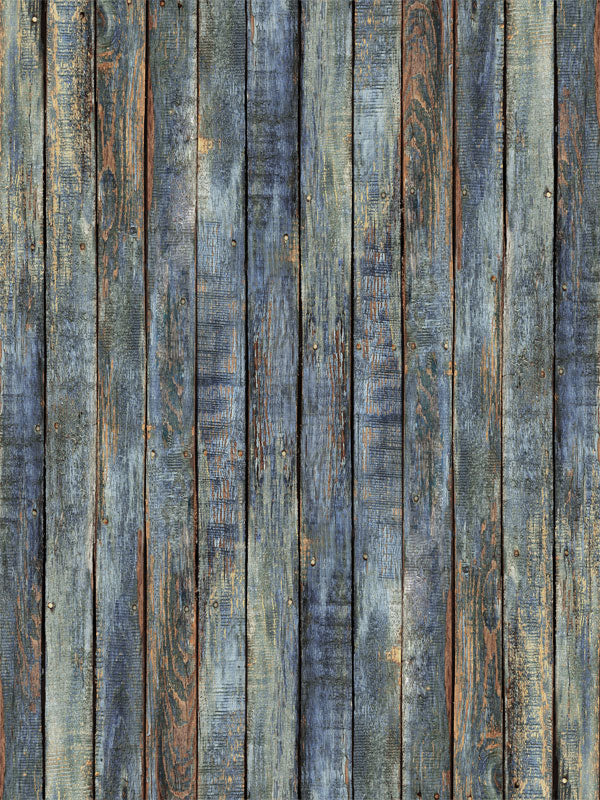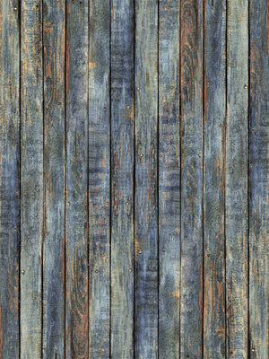 Aged wood floor mat features blue tones overlaying rustic wood planks.