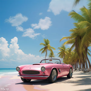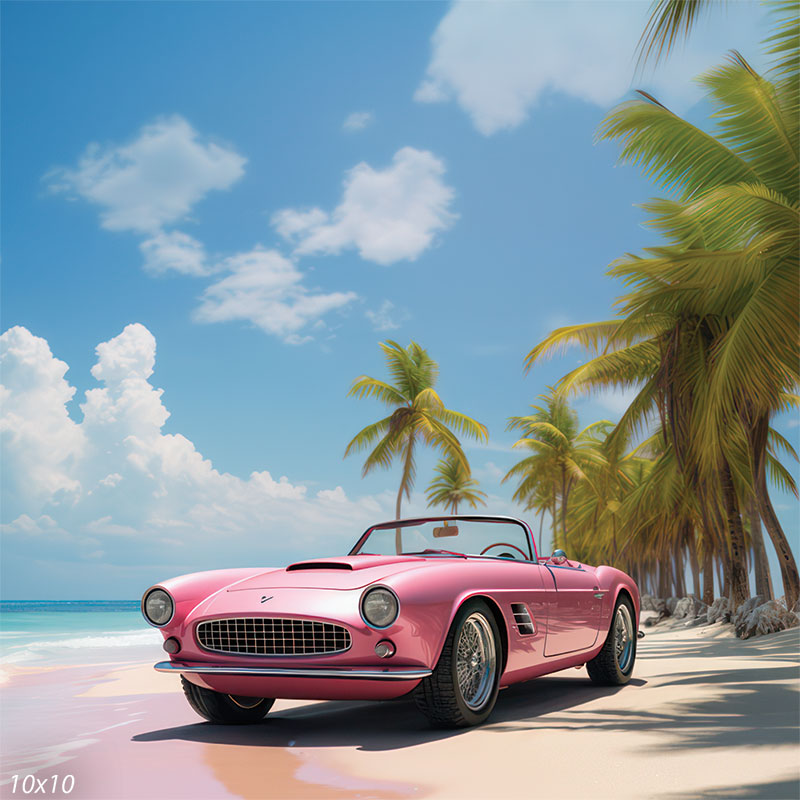 The Barbie Dream Car Beach Photography Backdrop is a vibrant and fun setting perfect for any photoshoot with a Barbie theme. Featuring a stylish pink convertible parked on a beautiful beach with palm trees and clear skies, this backdrop is ideal for creating a sunny, playful atmosphere. It's perfect for children's photoshoots, summer-themed sessions, and birthday parties, providing a whimsical and glamorous setting that evokes the iconic style of Barbie.