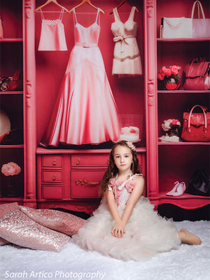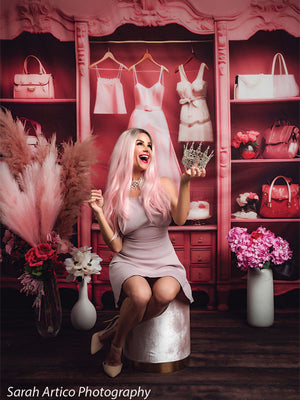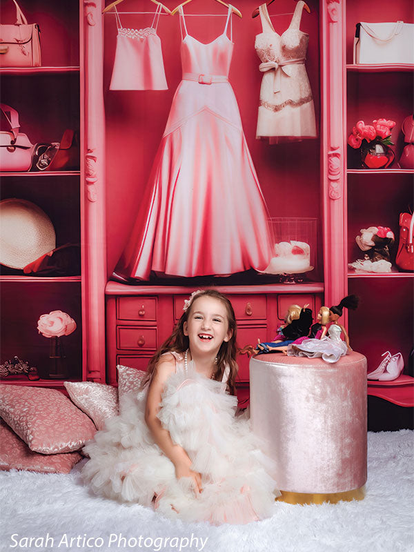 Step into Barbie's world with the Barbie's Fashion Closet Photography Backdrop, a delightful and stylish setting perfect for any photoshoot with a Barbie theme. This backdrop features an array of pink dresses, handbags, and accessories meticulously arranged to create a glamorous fashion closet. Ideal for children's photoshoots, birthday parties, and themed sessions, this backdrop brings Barbie's iconic style to life, making every photo shoot a magical experience.